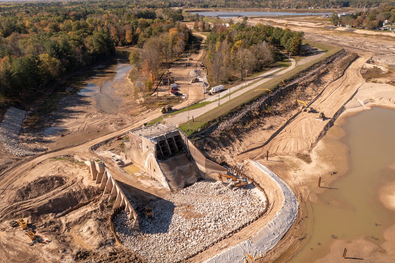 Roughly 10 miles downstream the impounded water overtopped – but did not breach – the Sanford Dam,